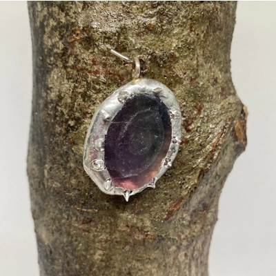 This is a lovely piece of fluorite coloured purple and blue green. It also has an etched eye upon it. Approx 1”